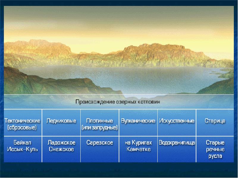- 9. Тектонические озера Тектонические озера образуются в результате прогибания земной коры или