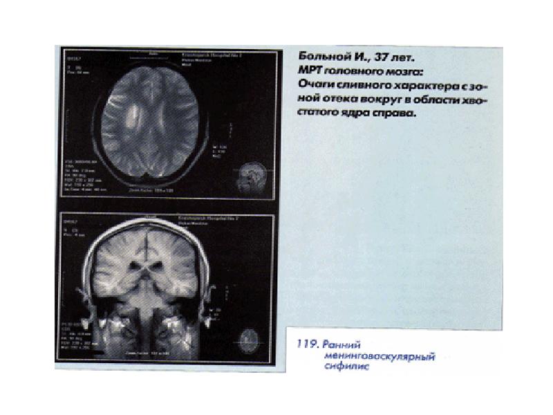- 13. Ранний нейросифилис 1.скрытый(асимптомный):легкая ГБ,ГК,тошното,КБ,ЧМН---повышение белка в ликворе 2. Острый сифилитический