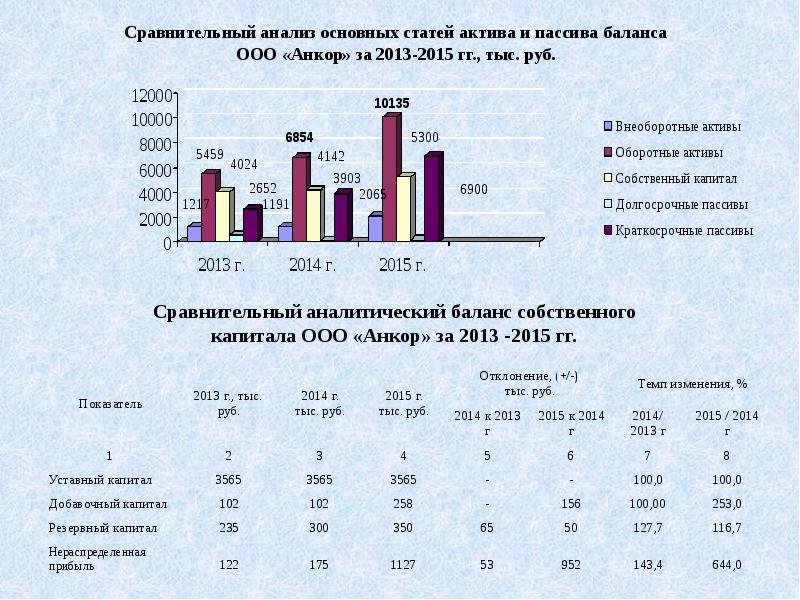 - 7. Сравнительный аналитический баланс заемного и привлеченного капитала ООО «Анкор» за 2013-2015