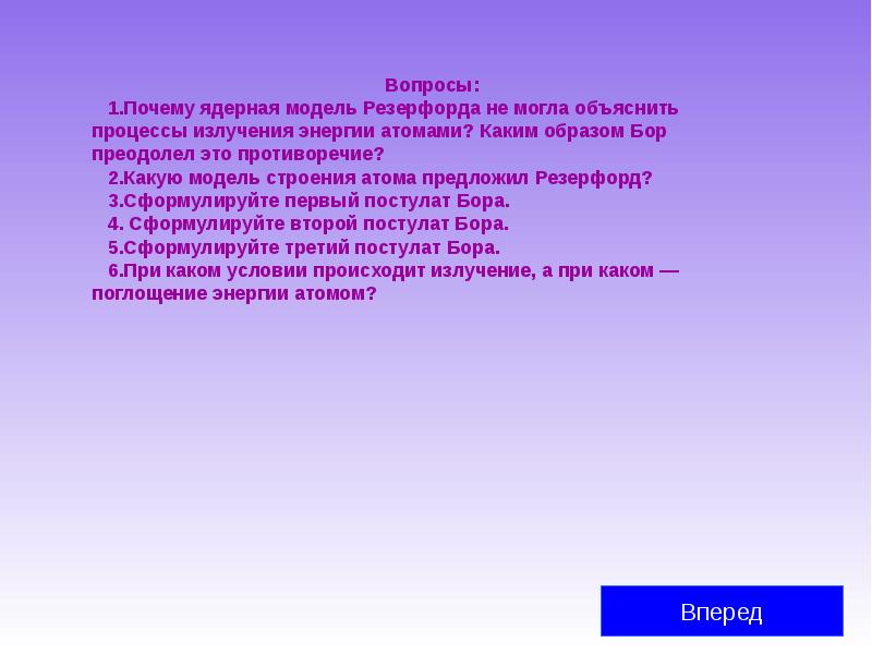 Презентации» Образование» Ядерная модель атома. Квантовые постулаты Бора Физика 11 класс