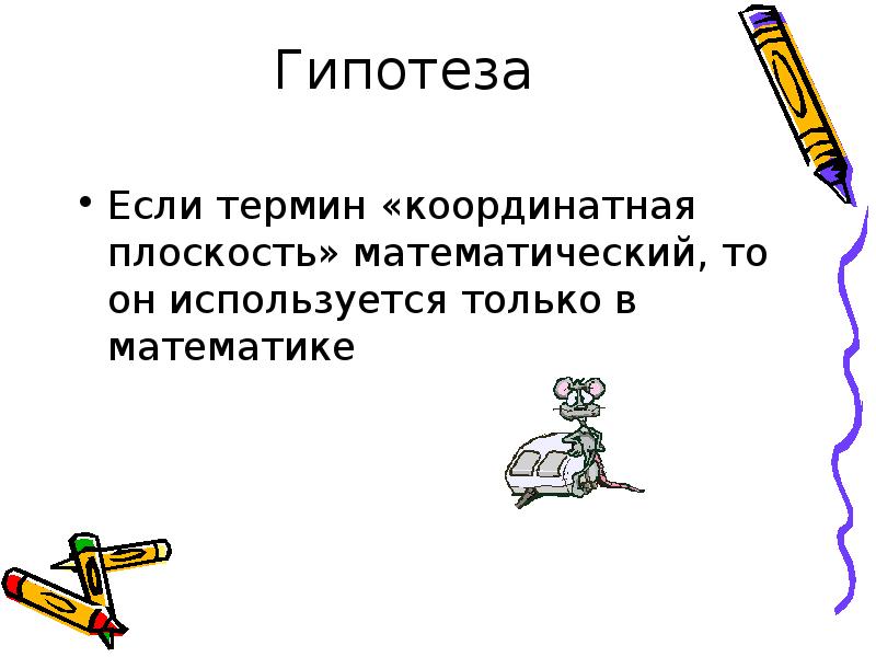 - 3. Гипотеза Если термин «координатная плоскость» математический, то он используется только