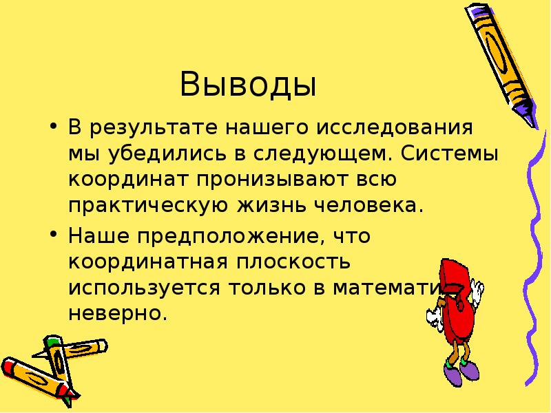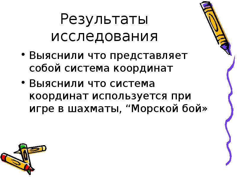 - 5. Результаты исследования Выяснили что представляет собой система координат Выяснили что система
