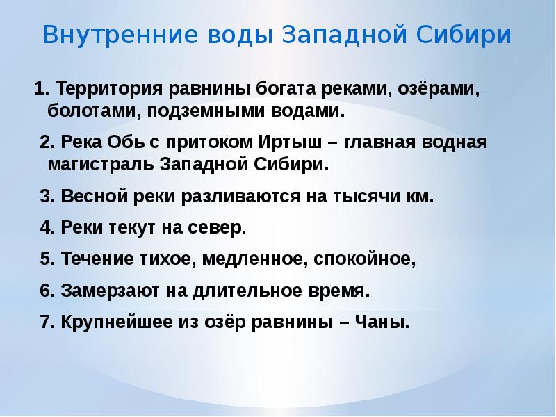 - 16. Внутренние воды: другие типы В Западной Сибири много замкнутых неглубоких бессточных