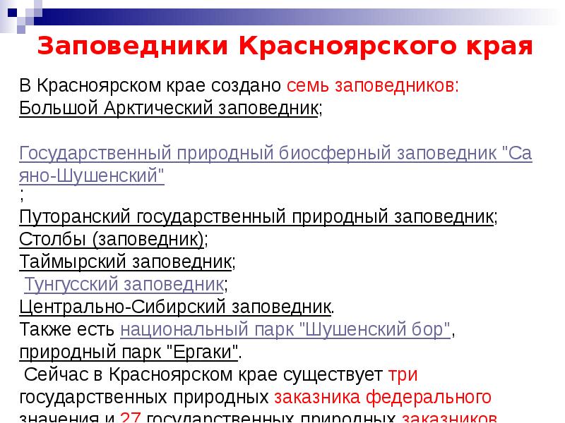 Заповедники Красноярского края В Красноярском крае создано семь презентация