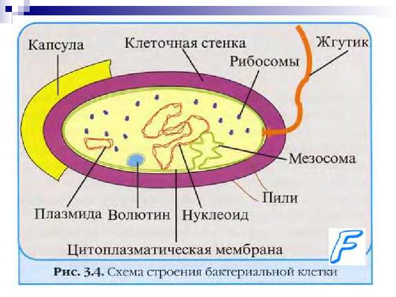 - 35. Строение бактериальной клетки 1 — клеточная стенка, 2 — наружная цитоплазматическая