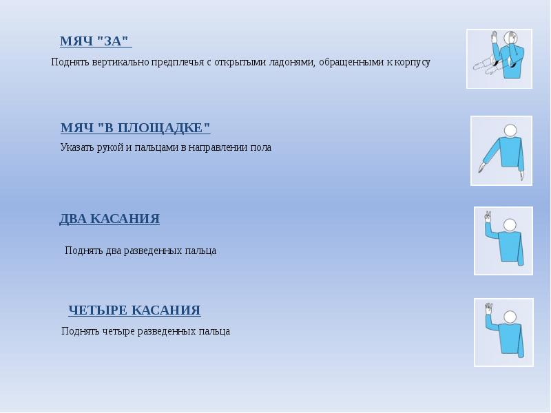 Скачать презентацию на тему Жесты главного судьи в волейболе можно ниже: